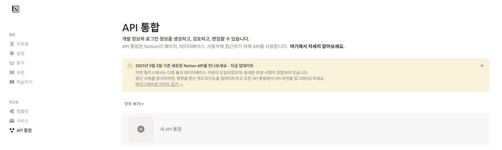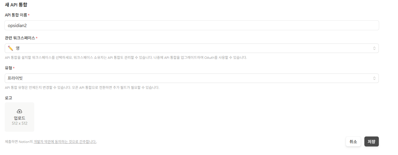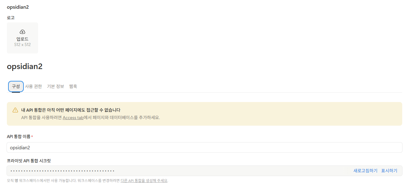 일단 Notion API에서 통합 토큰을 생성한다. (나는 프라이빗으로 했는데 문제 없었다)