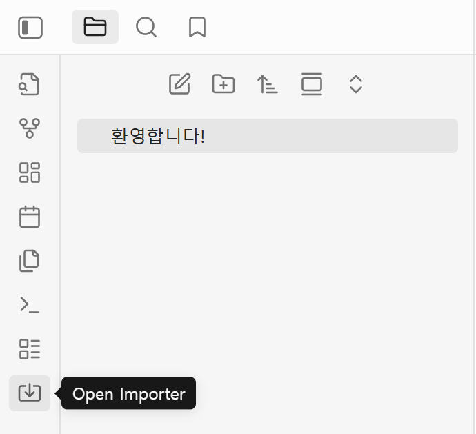 앱 홈 - 왼쪽라인 하단에 있는 톱니바퀴 클릭 - 커뮤니티 플러그인 - 커뮤니티 플러그인 탐색 - 검색창에 importer 검색 - 개발자 opsidian으로 되어 있는 importer 설치 - 활성화