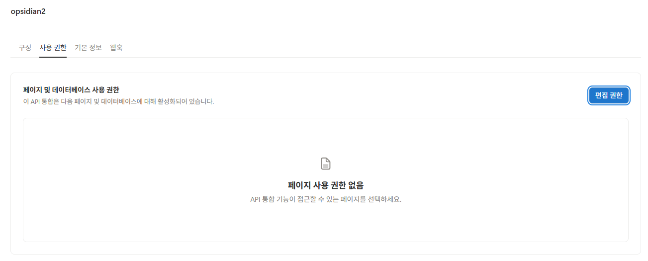 사용 권한에서 연결하고 싶은 페이지에 토큰을 연결한다.(연결 안하면 데이터 임포트할때 페이지를 못찾는다)