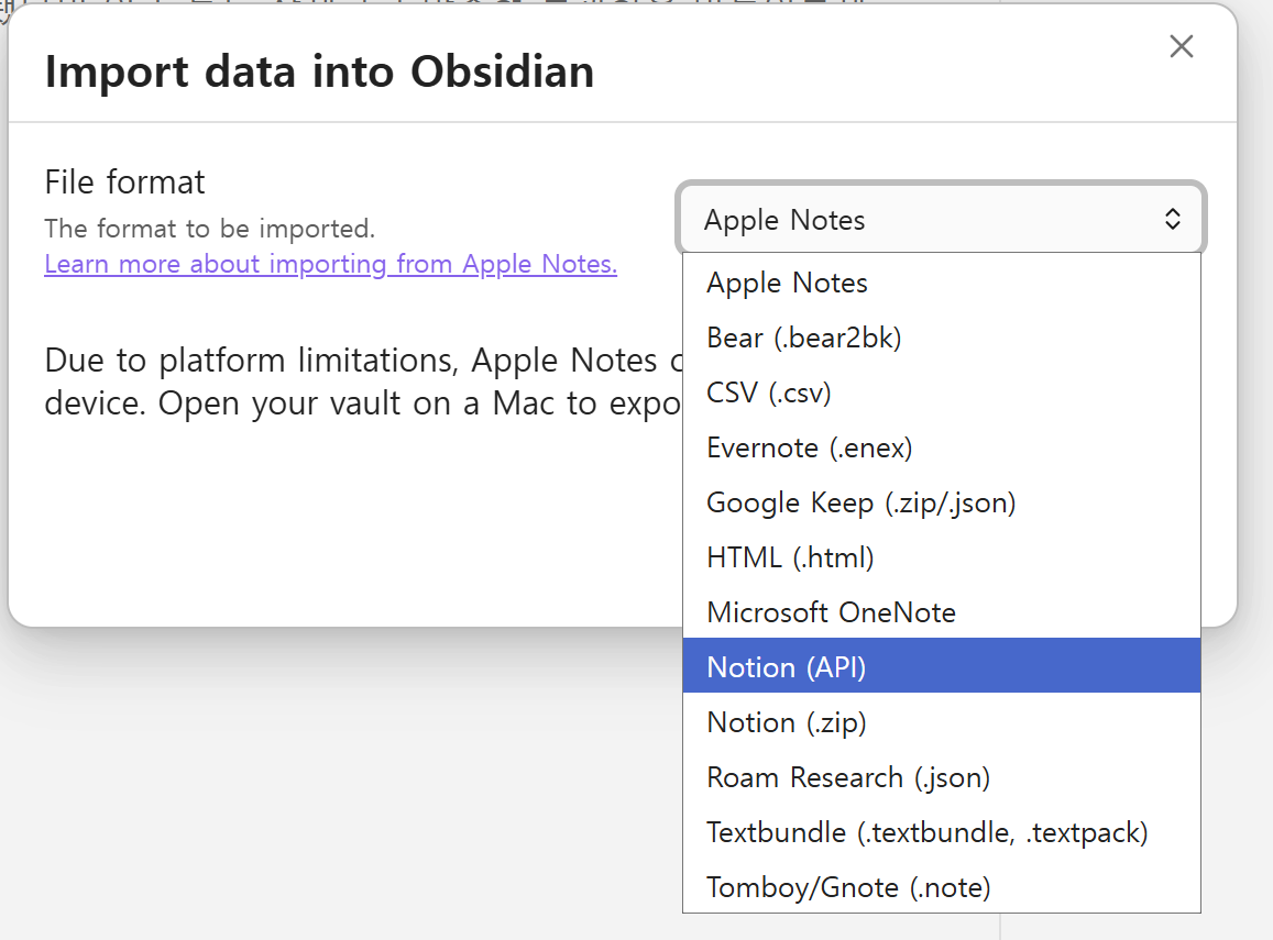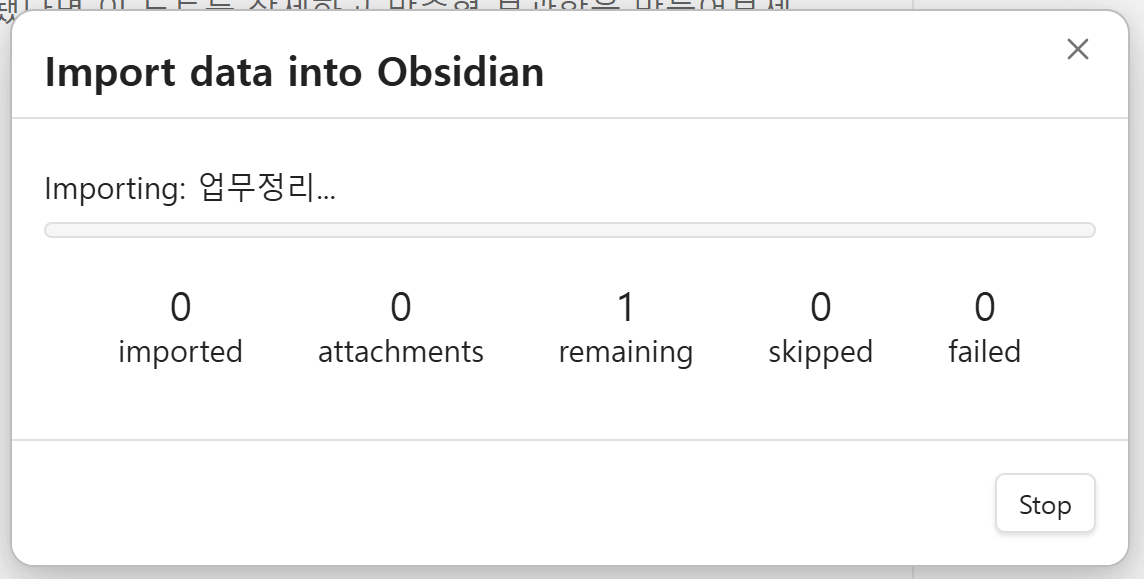 Import 버튼을 누르면 알아서 옵시디언이 데이터를 가져오는데